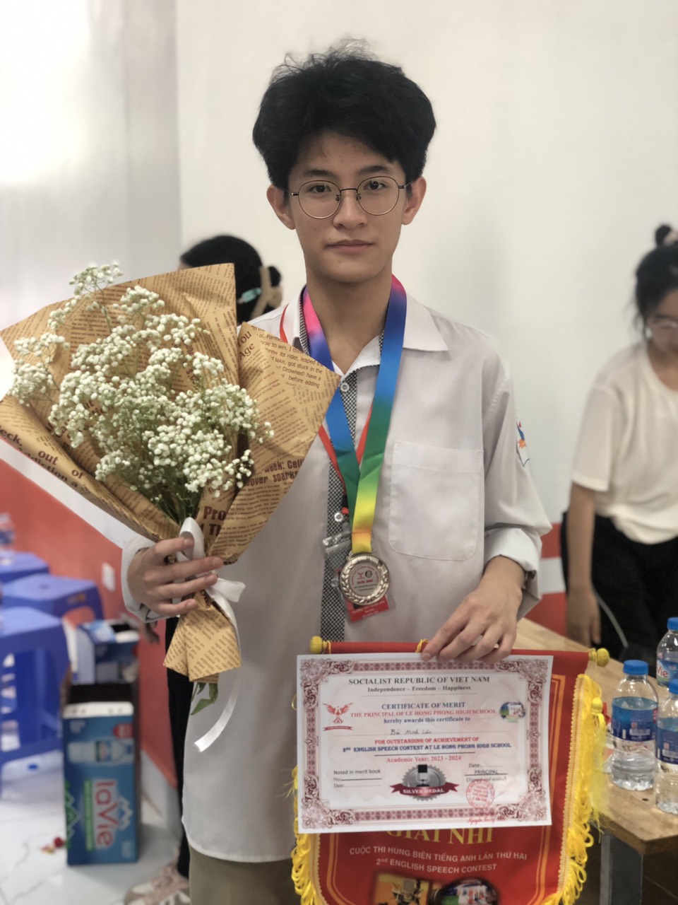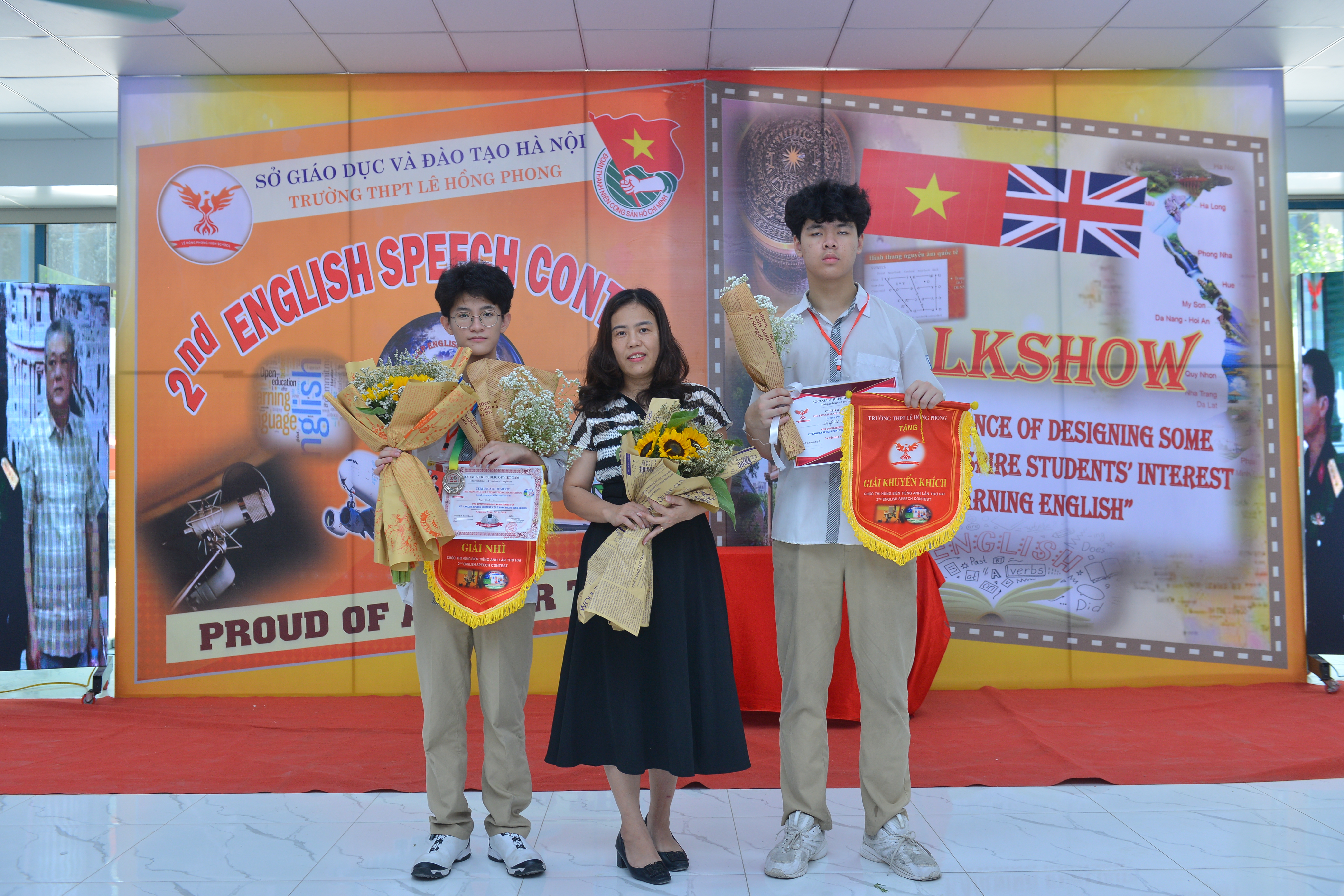 Hôm nay, các thành viên lớp A2 cùng với các bạn học sinh lớp A8 đã cùng cổ vũ cho hai bạn Minh Lân (A2) và Hải Đăng (A8) đại diện cho Trường THPT Trung Văn trong cuộc thi hùng biện tiếng Anh được tổ chức tại trường THPT Lê Hồng Phong (tư thục). Nhờ sự cổ vũ nhiệt tình của các bạn, hai bạn tham gia đã mang về giải cho trường với giải Nhì của Minh Lân và giải Khuyến khích của Hải Đăng.