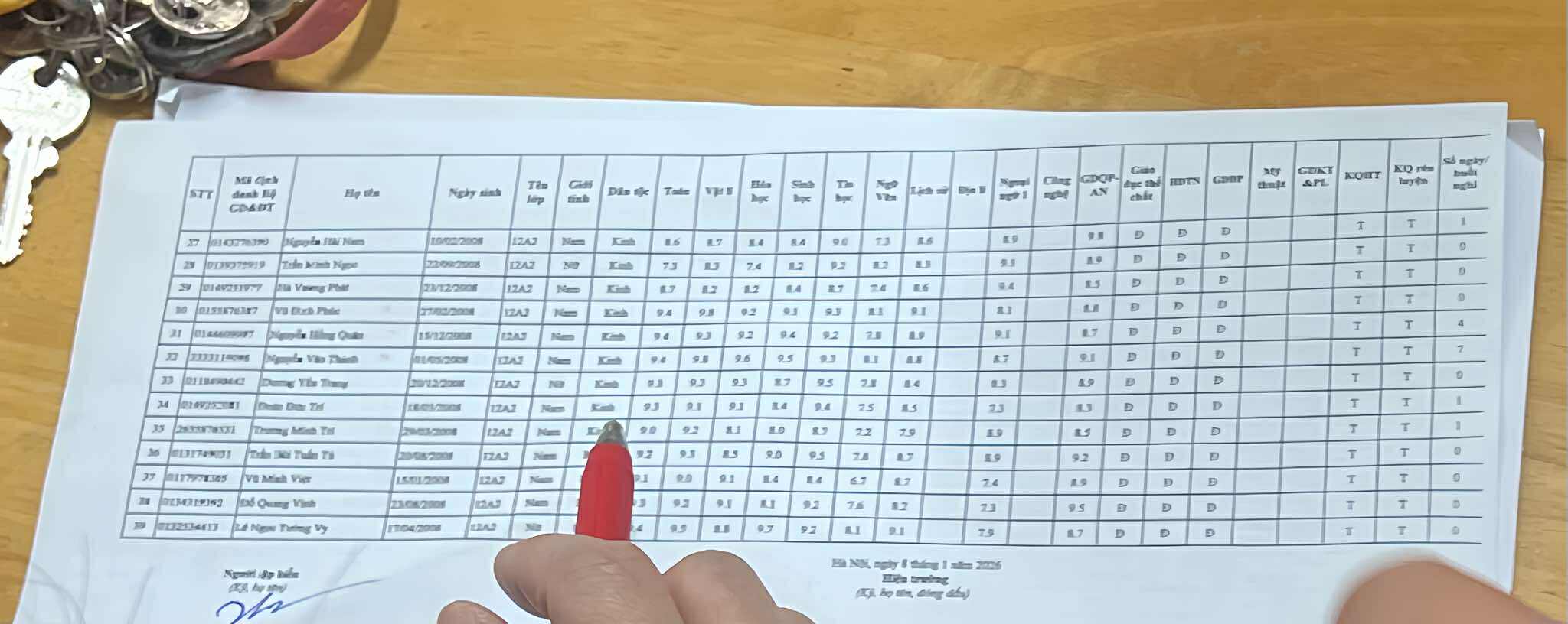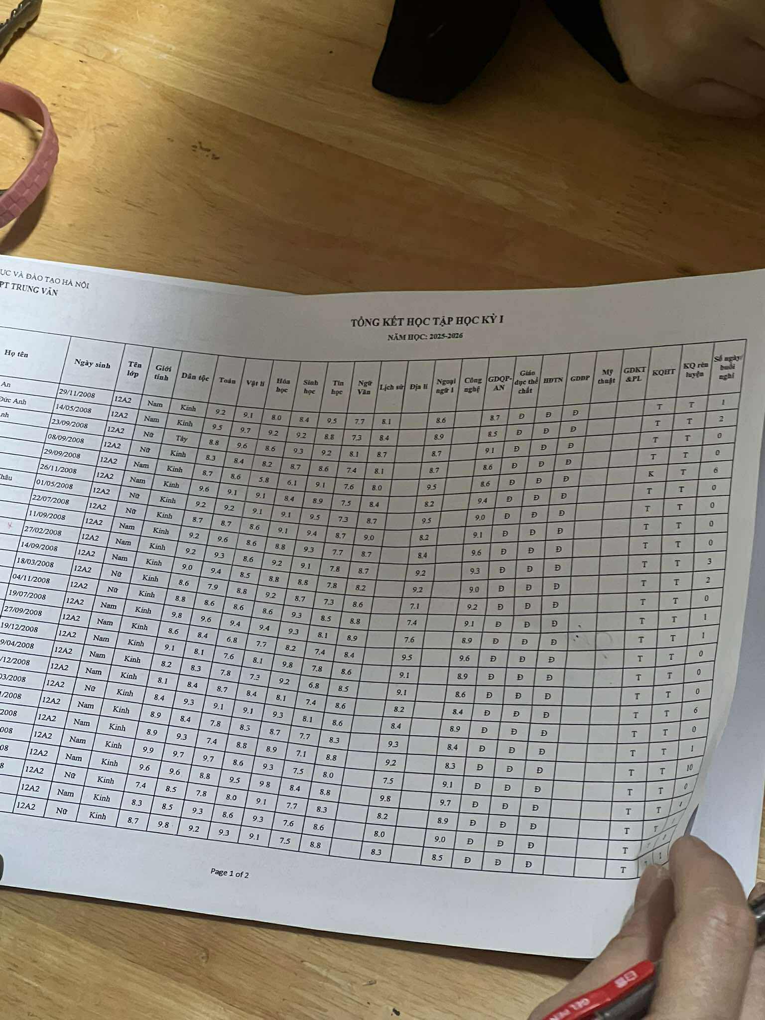 Bảng điểm tổng kết học kì I - năm học 2025 - 2026 (19/01/2026) | A2 Trung Văn (2023 - 2026) Official Website
